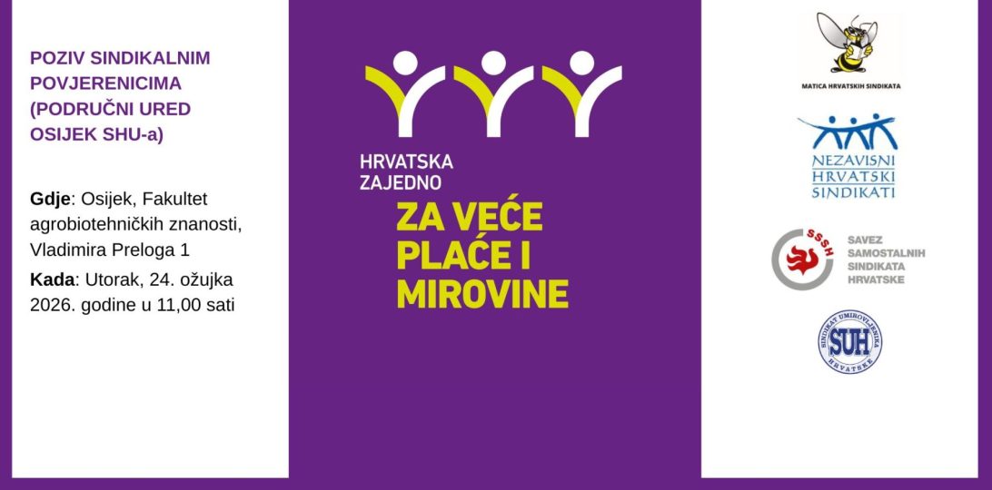 12. ožujka 2026. 12. ožujka 2026.Kategorije VIJESTIPoziv na zajednički pripremni skup sindikalnih povjerenika/povjerenica (Područni ured Split SHU-a)