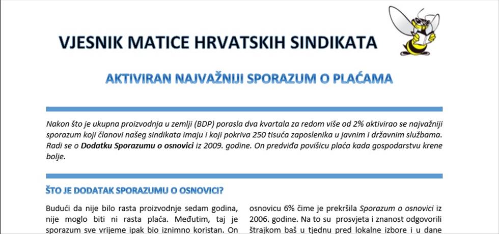 OBAVIJEST SINDIKALNIMN POVJERENICIMA