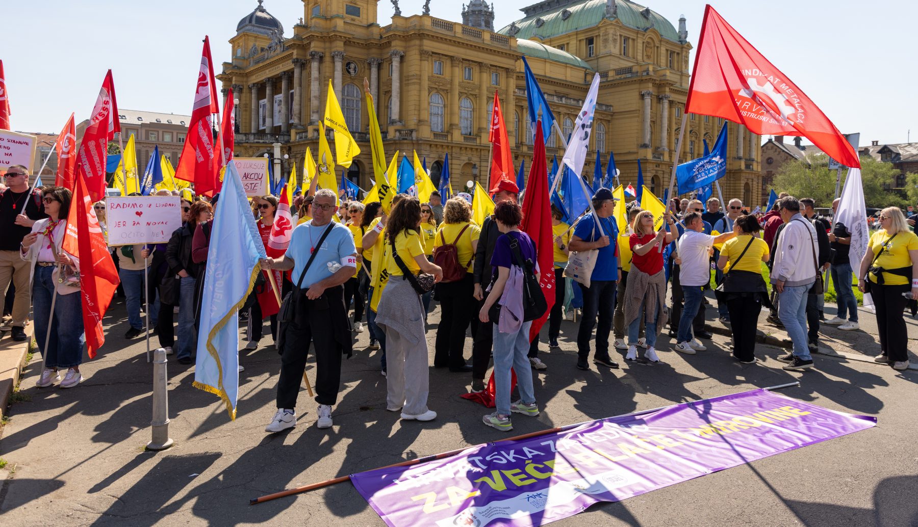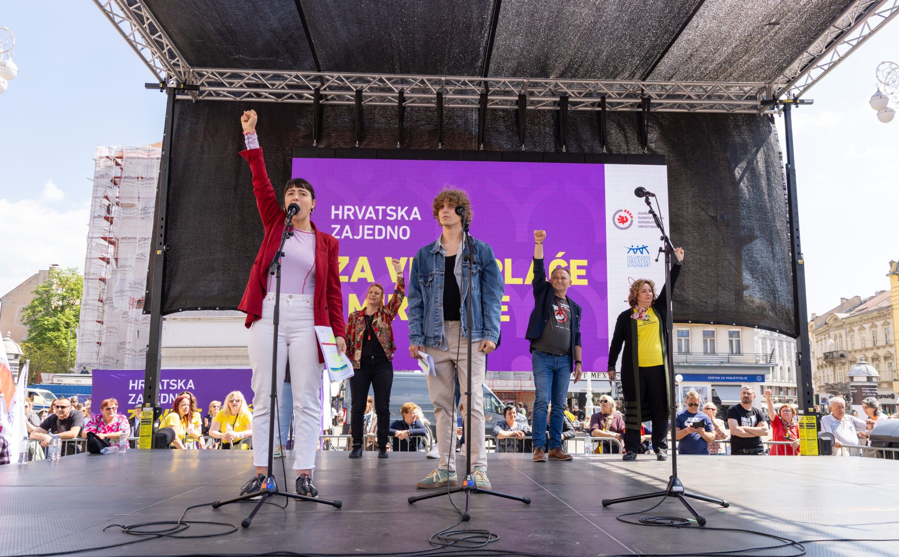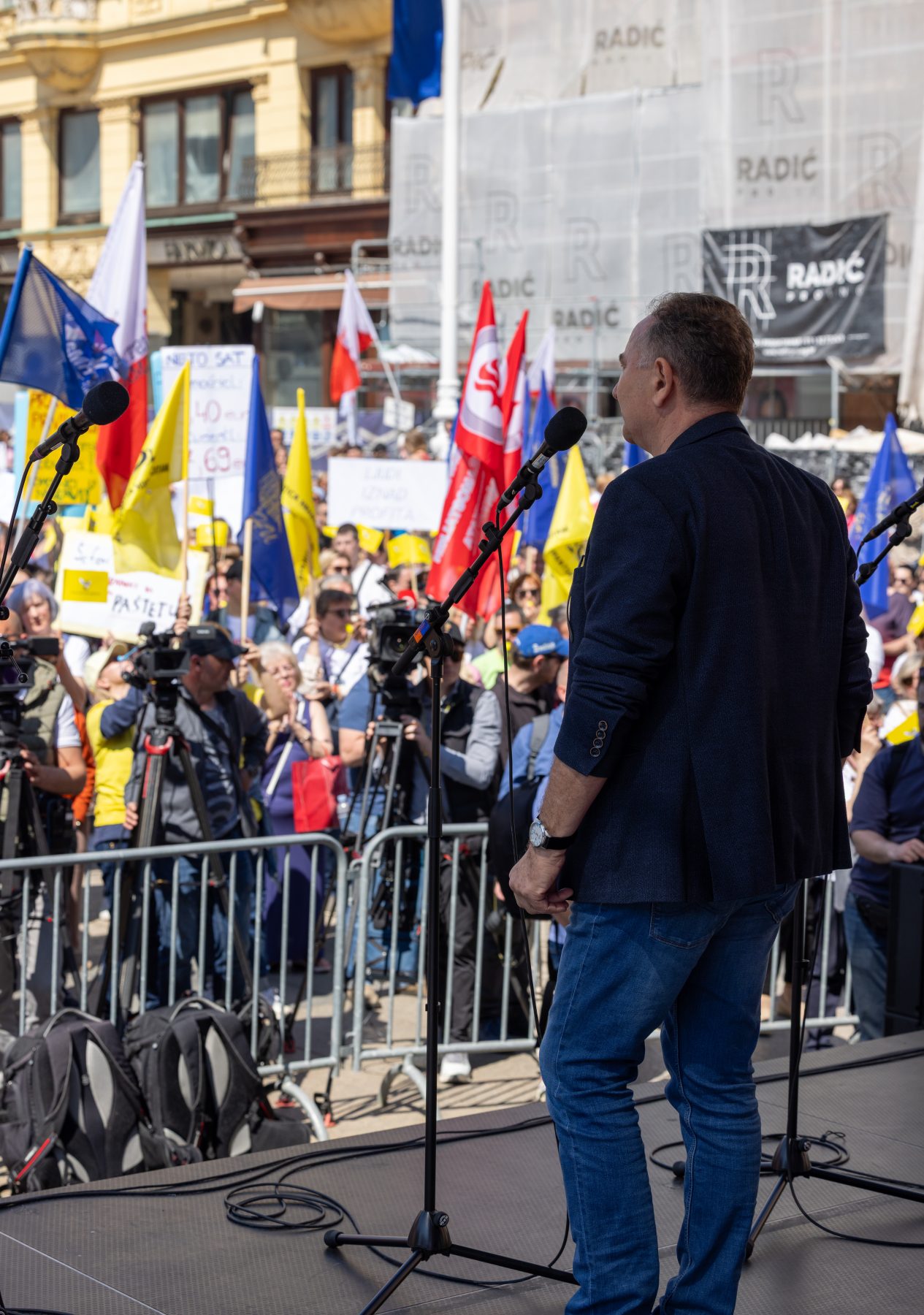 10. travnja 2026. 10. travnja 2026.Kategorije FOTOGRAFIJEPripreme za prosvjed “Hrvatska zajedno za veće plaće i mirovine”, Zagreb, 9.4.2026.