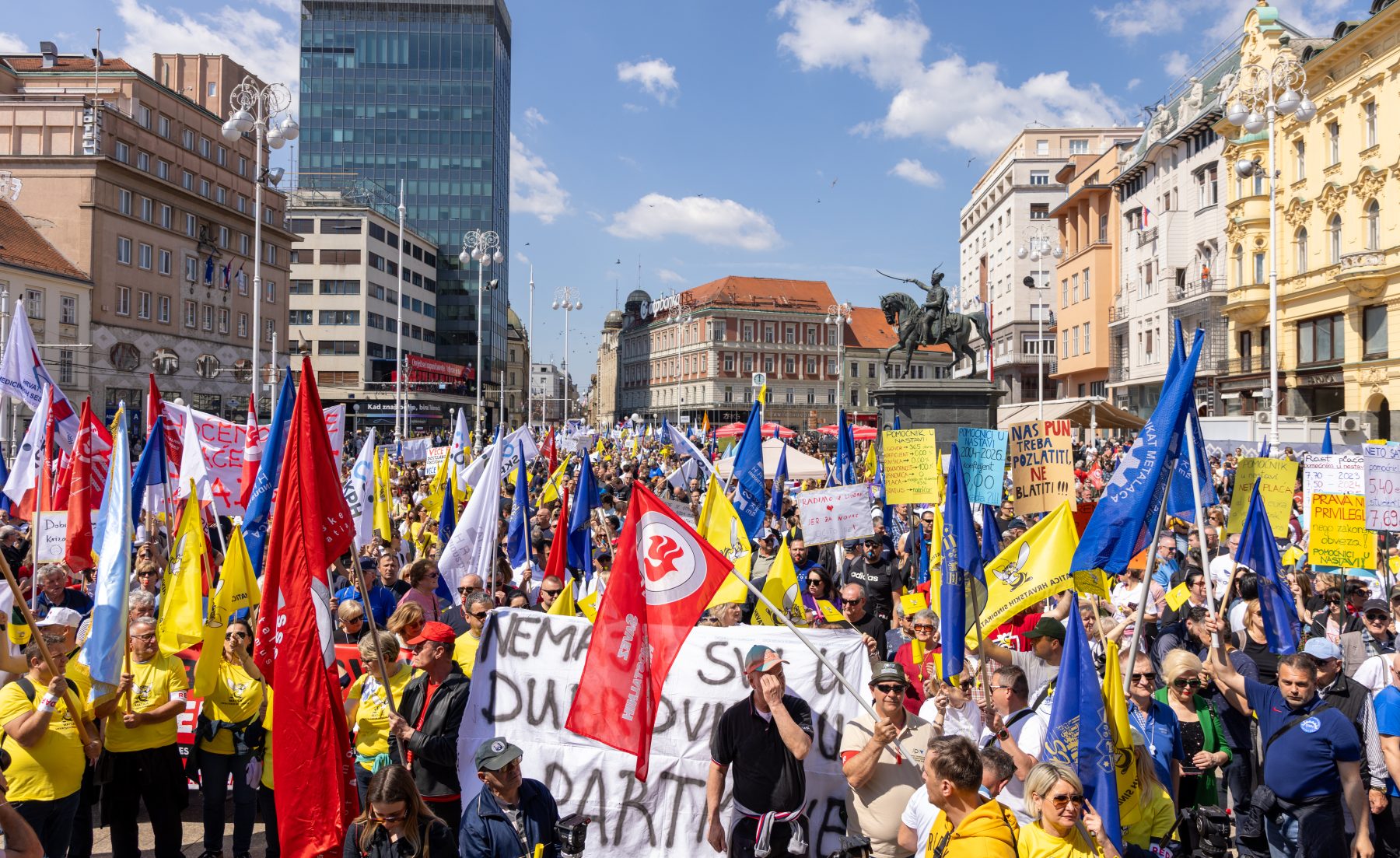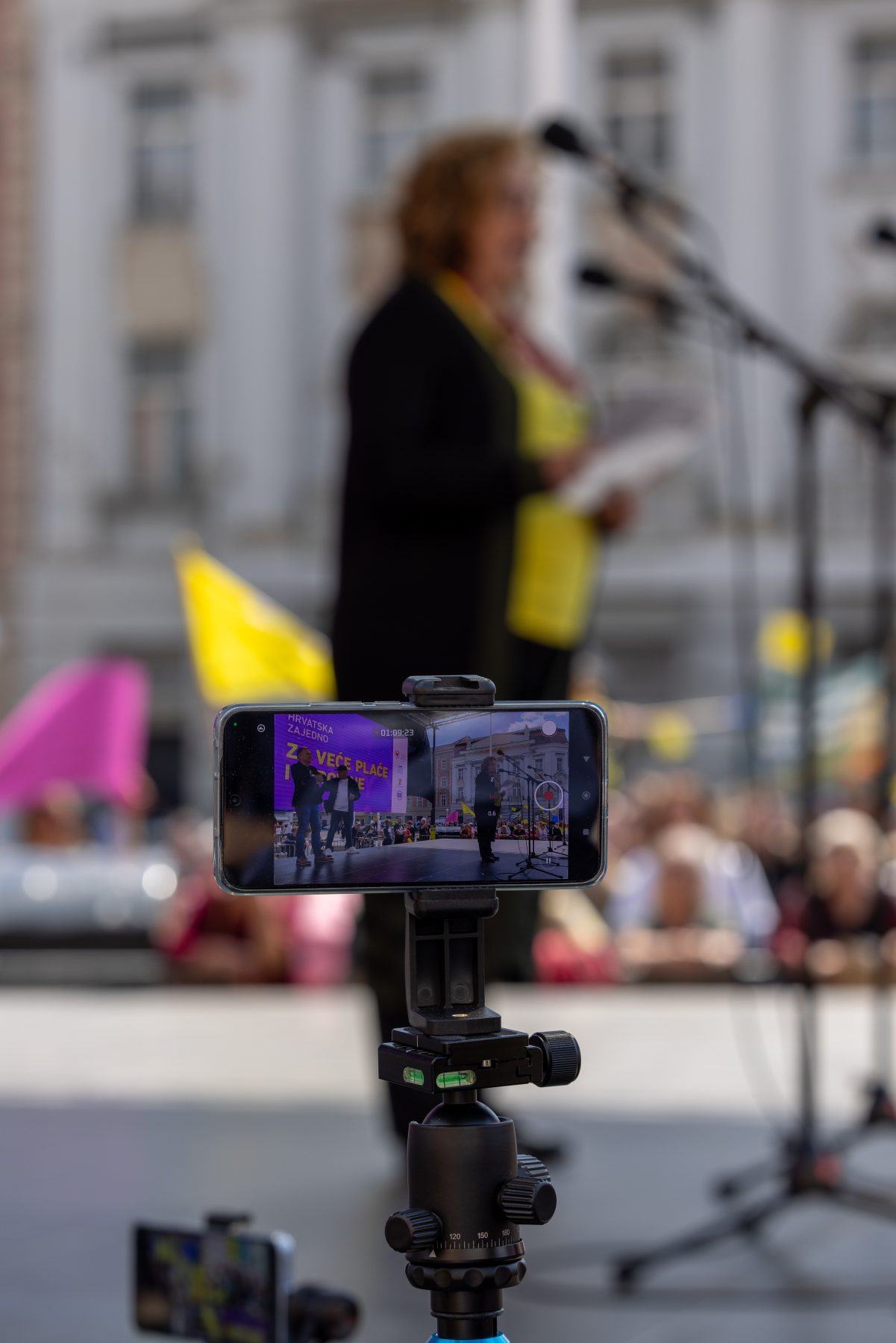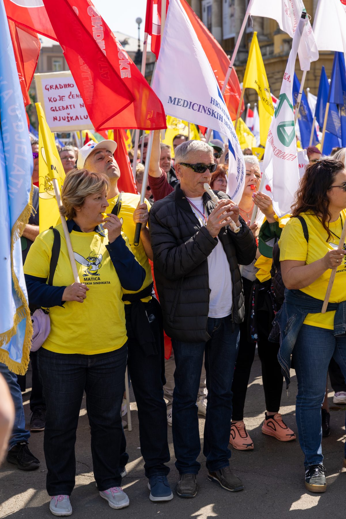 10. travnja 2026. 10. travnja 2026.Kategorije FOTOGRAFIJEPripreme za prosvjed “Hrvatska zajedno za veće plaće i mirovine”, Zagreb, 9.4.2026.