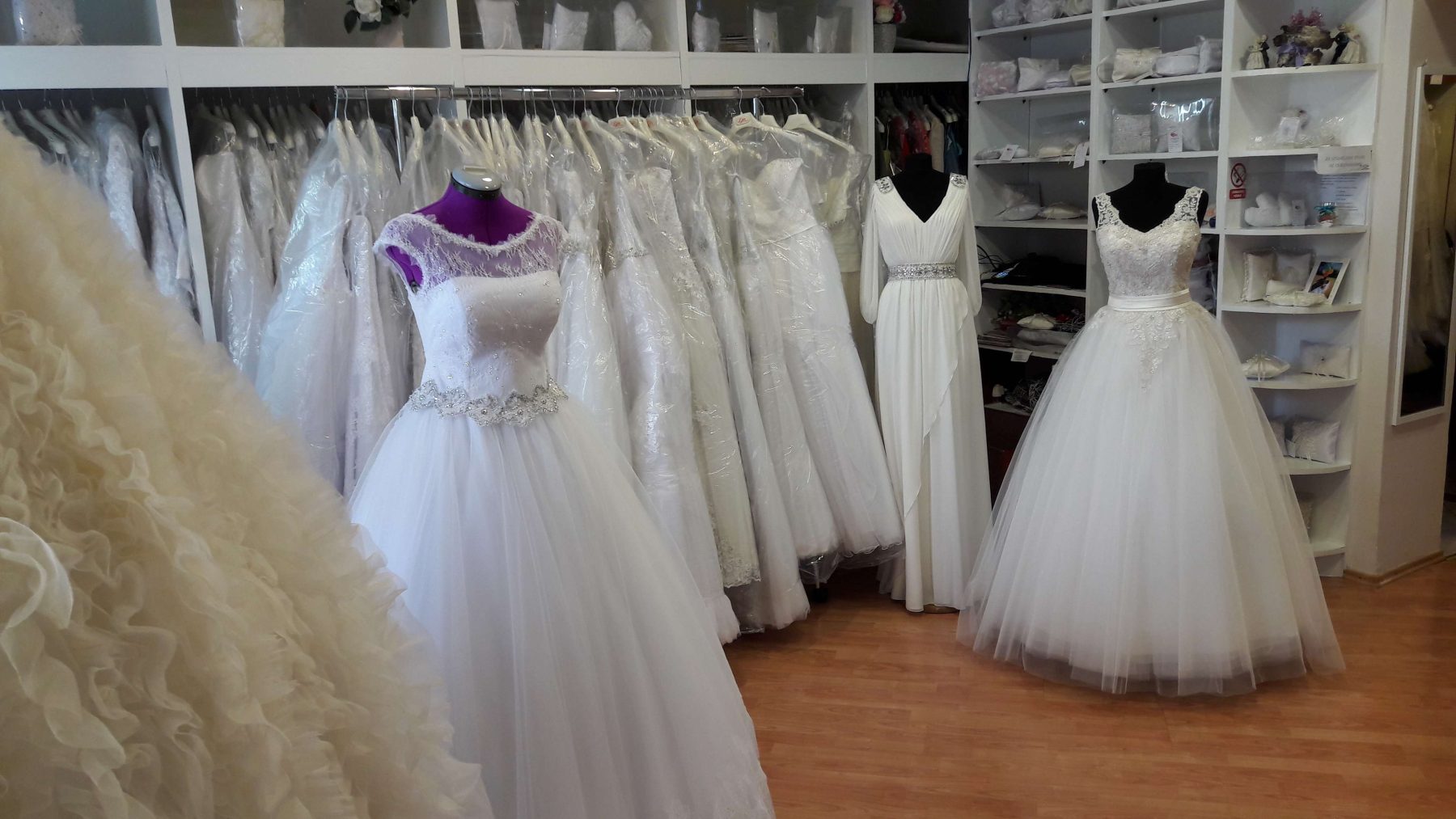 U salonu možete pronaći veliki izbor vjenčanica iz vlastite proizvodnje, kao i vjenčanice svjetskih modnih kuća (Madeline Gardner, David Bridal), večernjih haljina, haljina za djeveruše, klencerice, krsne haljinice, jastučiće za prstenje, kitice, pozivnice, zahvalnice, te svu popratnu opremu.