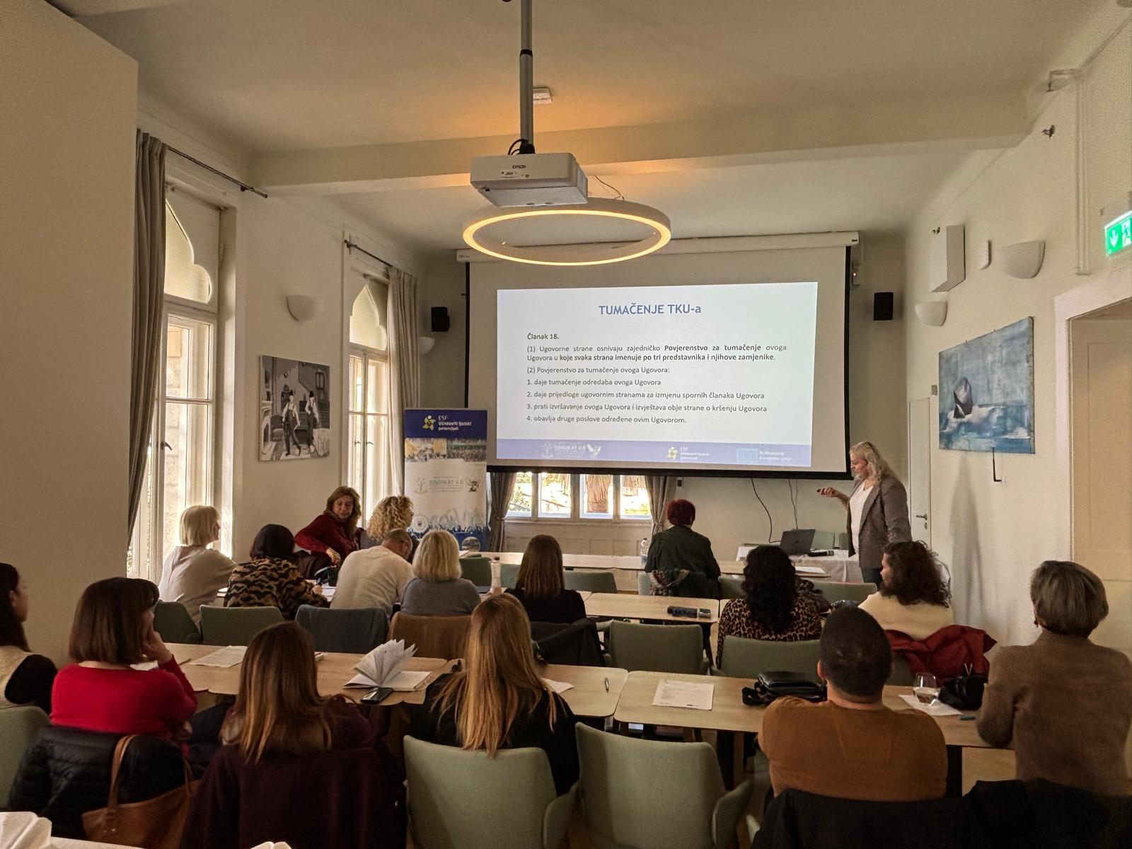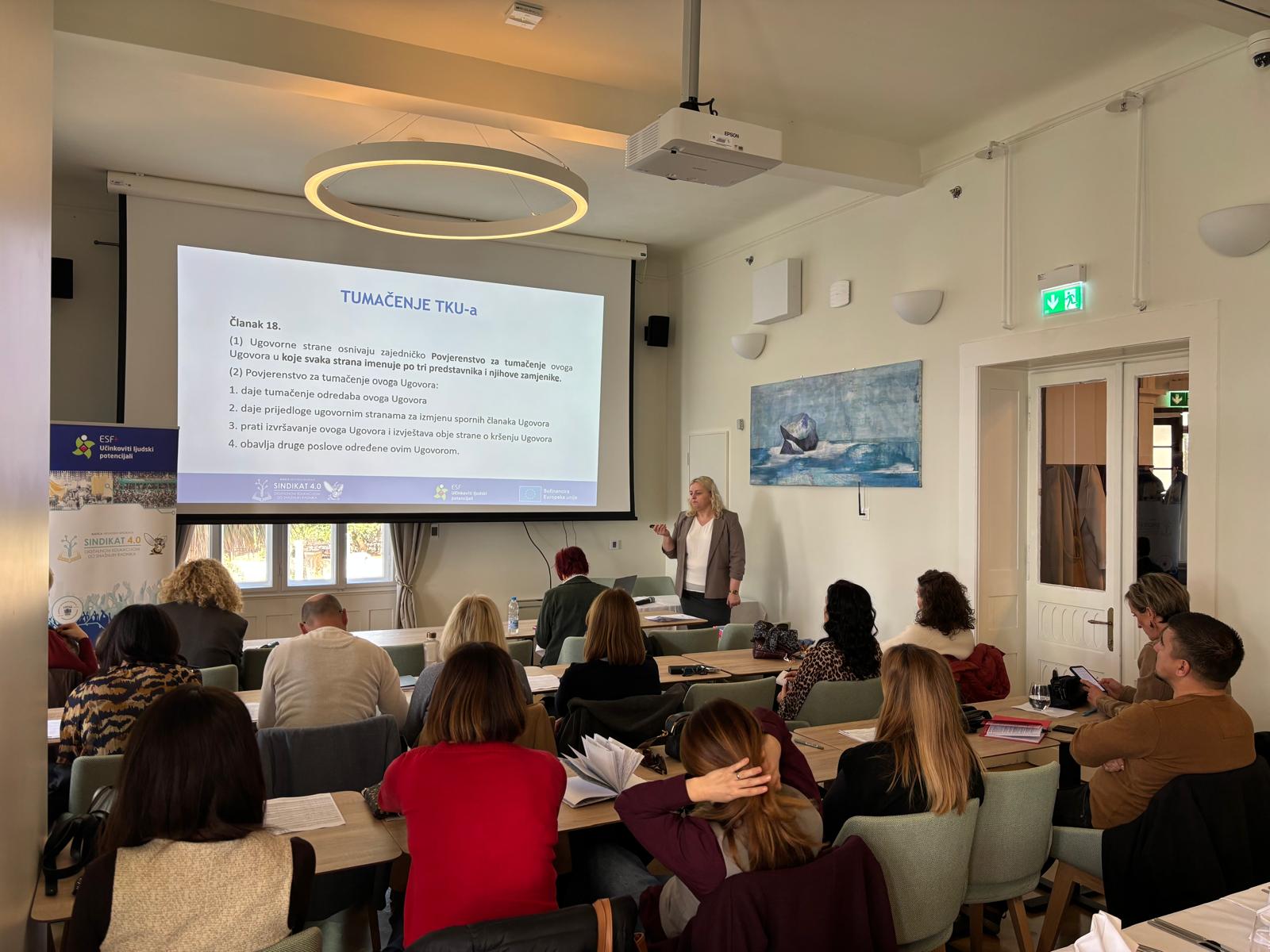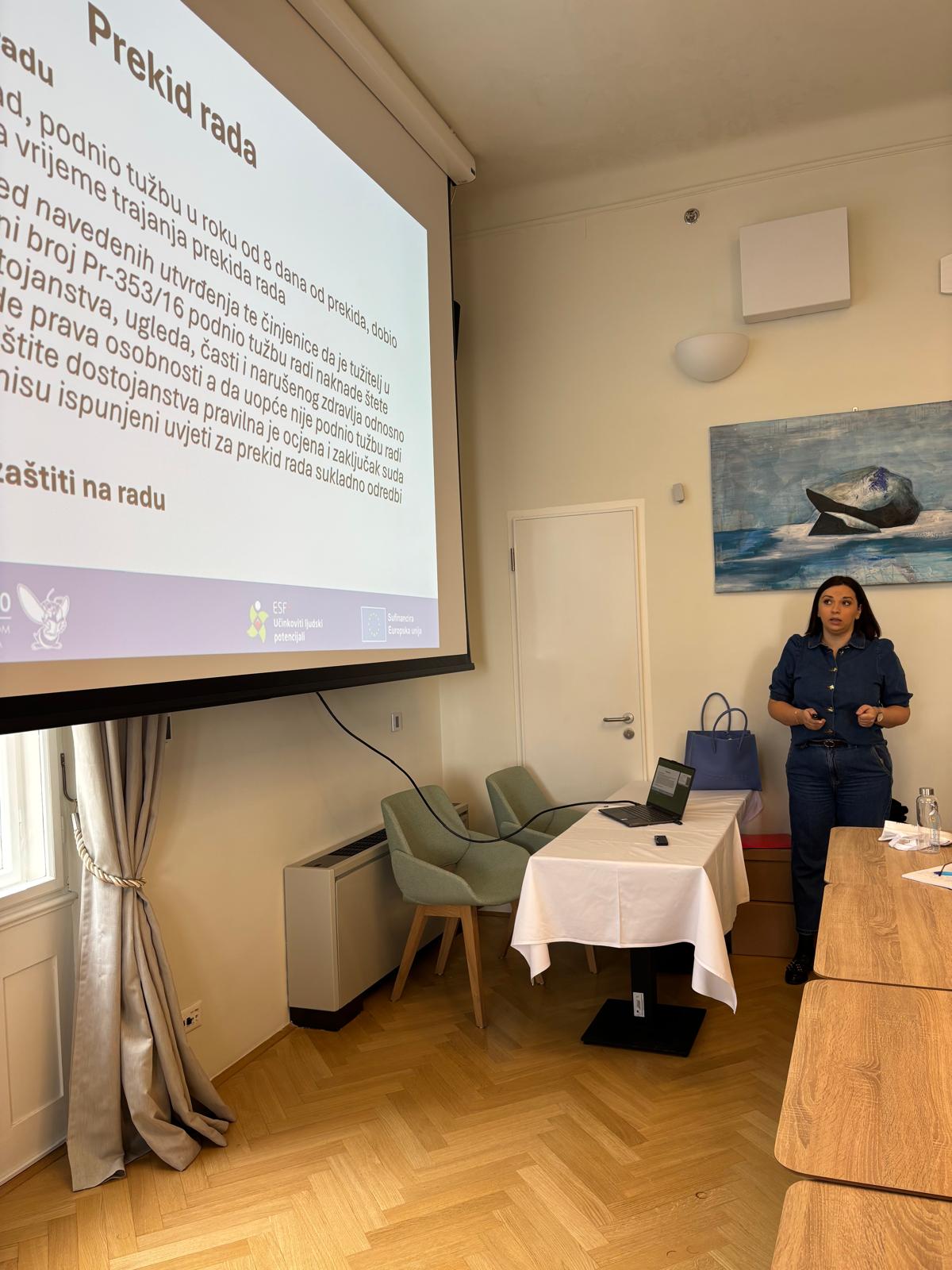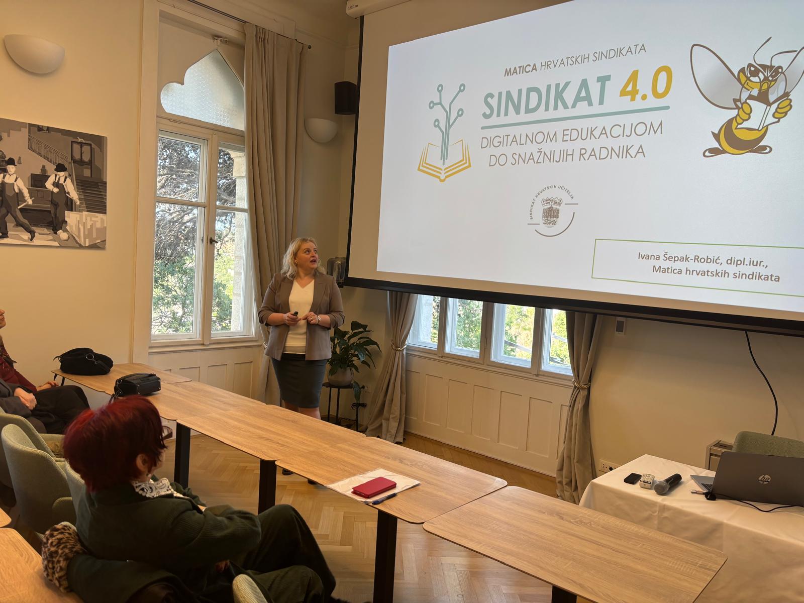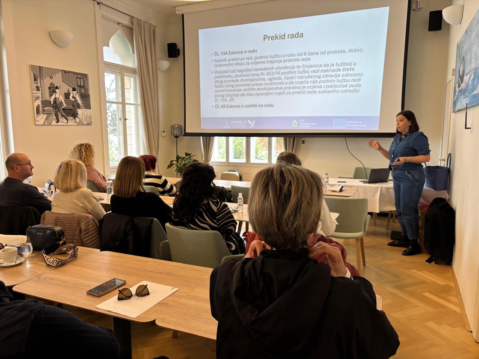 Uvod u radionicu s predavanjem o projektu i ciljevima i aktivnostima projekta održala je Ivana Šepak Robić, voditeljica projekta i viša stručna suradnica pravnica Matice hrvatskih sindikata.