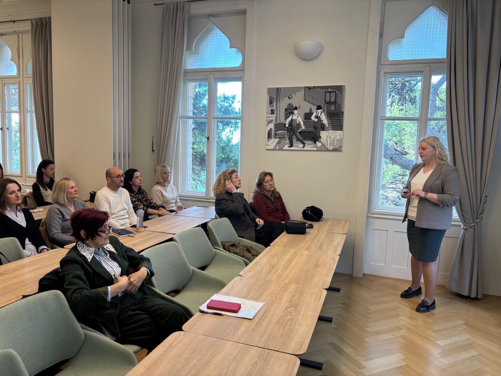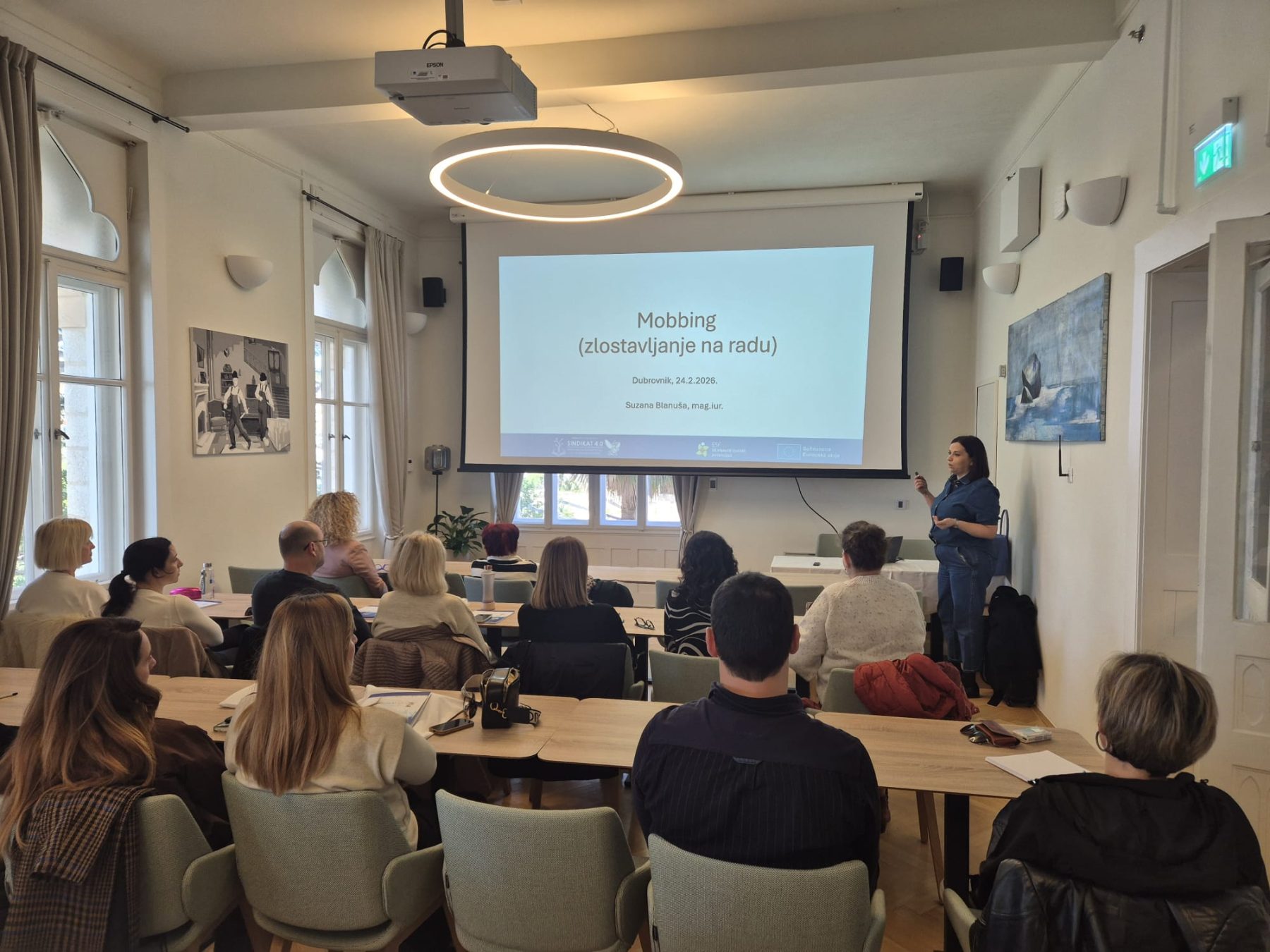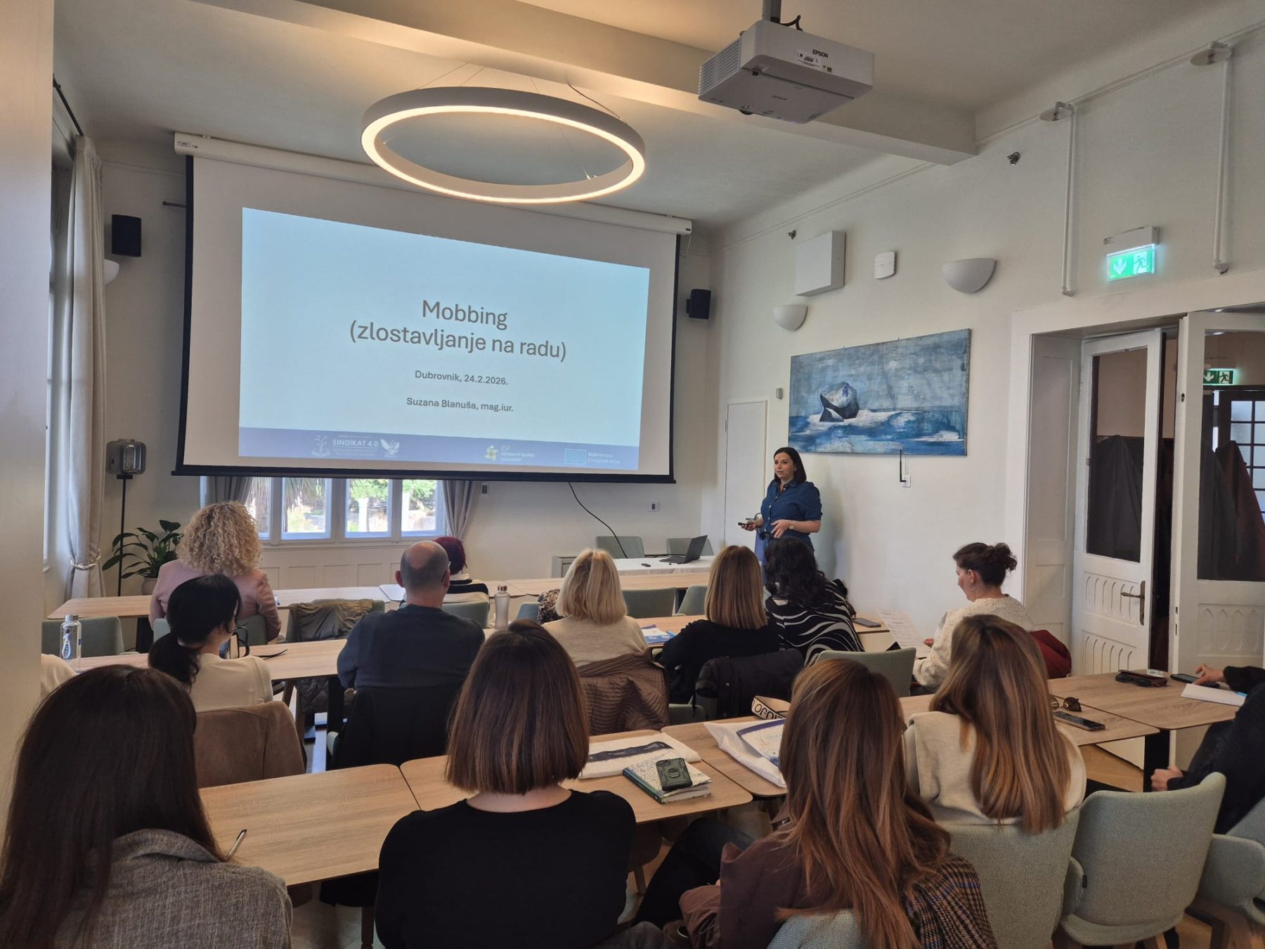 Drugi dan radionice započeo je predavanjem posvećenim temi mobbinga. Suzana Blanuša, pravnica iz Udruge Mobbing, upoznala je sudionike s pravnim okvirom koji uređuje ovu problematiku, načinima njegova prepoznavanja te mogućnostima kako se zaposlenici mogu zaštititi i adekvatno reagirati u takvim situacijama. Predstavila je i primjere sudske prakse, uključujući ishode tužbi vezanih uz mobbing, čime je dodatno približila praktičnu primjenu propisa. Predavanje je potaknulo velik interes sudionika, razmjenu osobnih i profesionalnih iskustava te otvorilo brojna pitanja, ponajprije o pravodobnom prepoznavanju mobbinga na radnom mjestu i učinkovitim načinima njegova rješavanja.