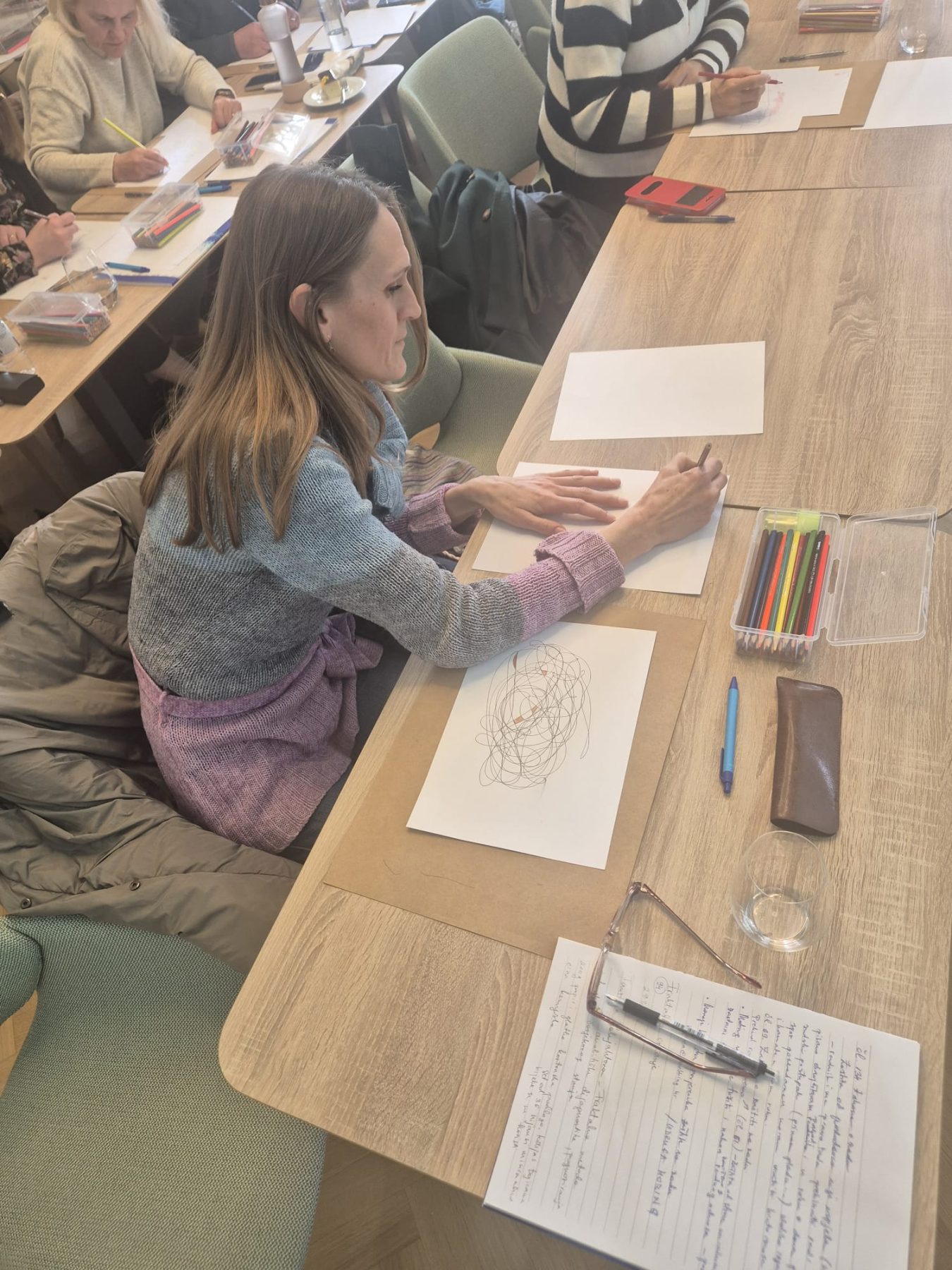 Lorena Mareglia, socijalna pedagoginja i voditeljica radionica po metodi fraktalnog crteža, zaključila je pilot radionicu interaktivnom radionicom fraktalnog crtanja. Kroz praktičan rad sudionicima je približila suvremene tehnike za smanjenje stresa na radnom mjestu te istaknula važnost njegove pravovremene prevencije. Sudionici su imali priliku iskusiti metodu u praksi, upoznati njezine učinke na emocionalnu ravnotežu i koncentraciju te osvijestiti kako kreativni pristupi mogu pridonijeti očuvanju mentalnog zdravlja u profesionalnom okruženju.